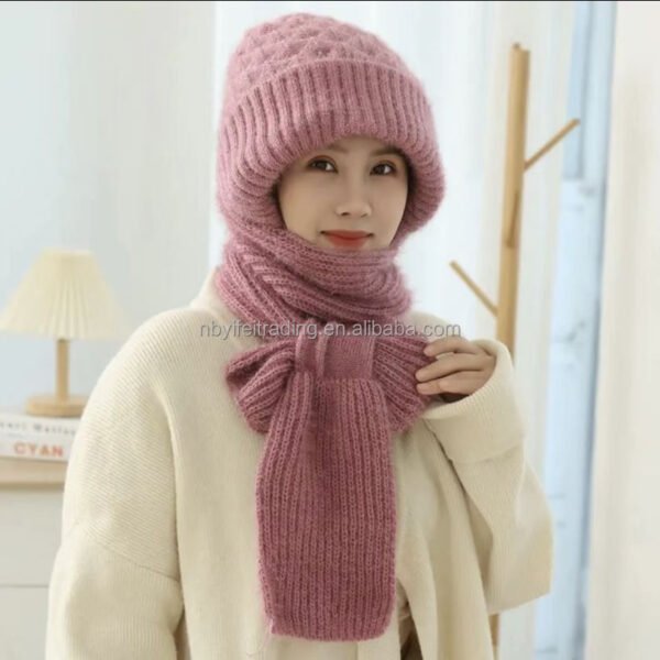 Winter Protection Windproof Cap with Scarf (pink)
